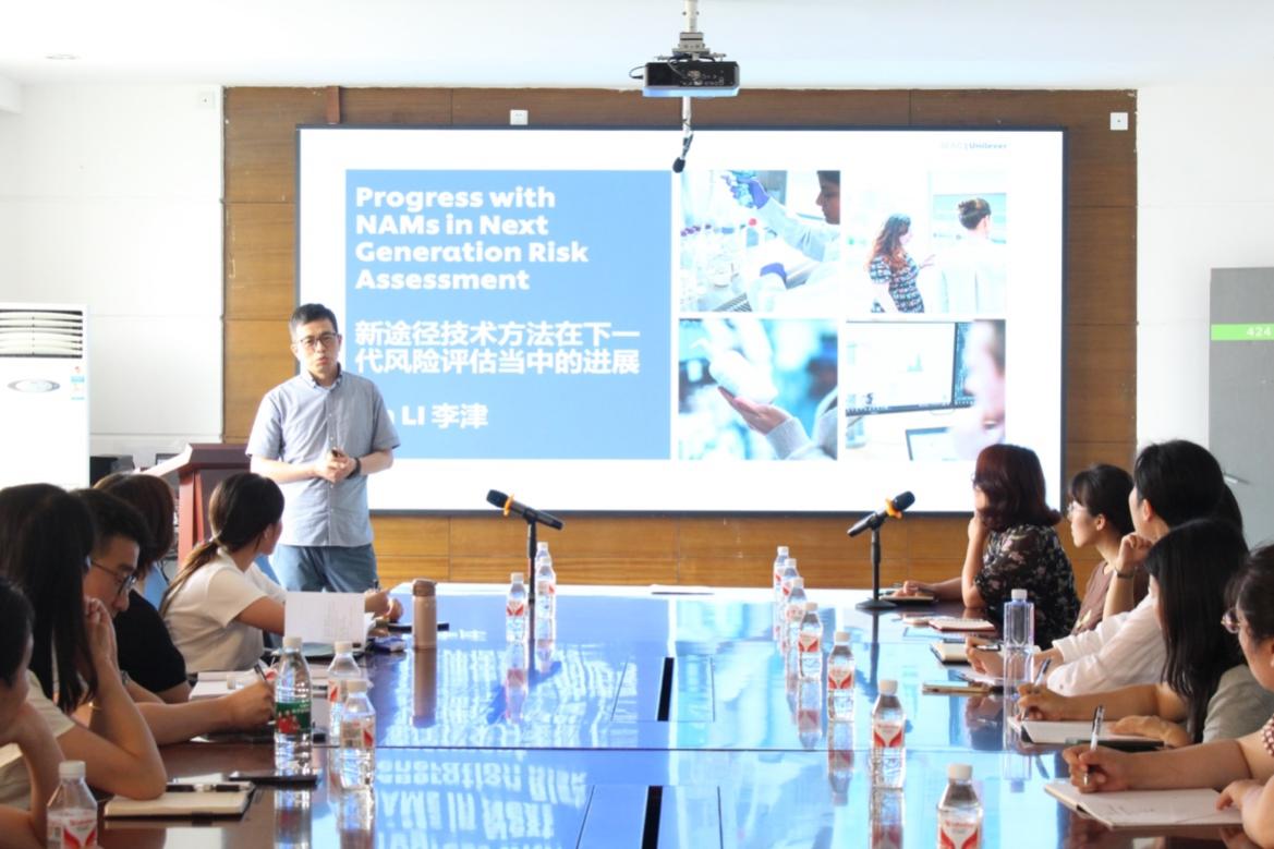 李津博士围绕安全风险评估相关基本概念、新途径方法在下一代风险评估中的应用等,结合国内外最新发展现状及趋势,为师生详细介绍了下一代风险评估在化学品尤其是化妆品安全评价领域中的应用情况和未来发展方向。他指出,欧盟已明确,到2030年化妆品行业安全风险评估严禁使用动物模型,因此随着毒理学替代法的广泛应用,基于计算毒理学及数据分析模型的化学物安全风险评估将会是未来毒理学的研究重点。此外,李津还介绍了联合利华的基本情况,鼓励学生们要加强学术交流,开阔科研视野和就业视野。报告结束后,师生与李津博士进行了深入的交流和讨论。