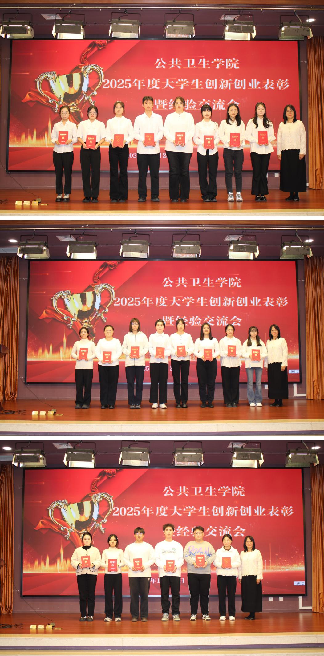 最后,陈欣对本次表彰大会作总结。她指出,本次大会旨在全面回顾学院2025年创新创业工作,高度礼赞了师生的创新创业精神。她提到,学院此前在制度建设与平台搭建方面付出诸多努力,今年更是迎来获奖数量最多、质量最高的丰收之年。她寄语全院师生,将创新创业精神融入专业学习与人生规划,在未来创造更多属于自己的精彩。