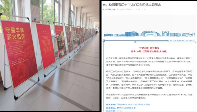 为认真学习贯彻党的二十大精神,大力弘扬和宣传红色文化,加强大学生爱党、爱国主义教育,2025年“七一”期间,yl7703永利集团官网党总支联合学校党委宣传部在校内成功举办了“守望丰碑薪火相传”辽宁“六地”红色印记主题展活动,yl7703永利集团官网学生党支部党员及入党积极分子担任红色志愿讲解员,吸引了众多师生参观,取得了良好反响。